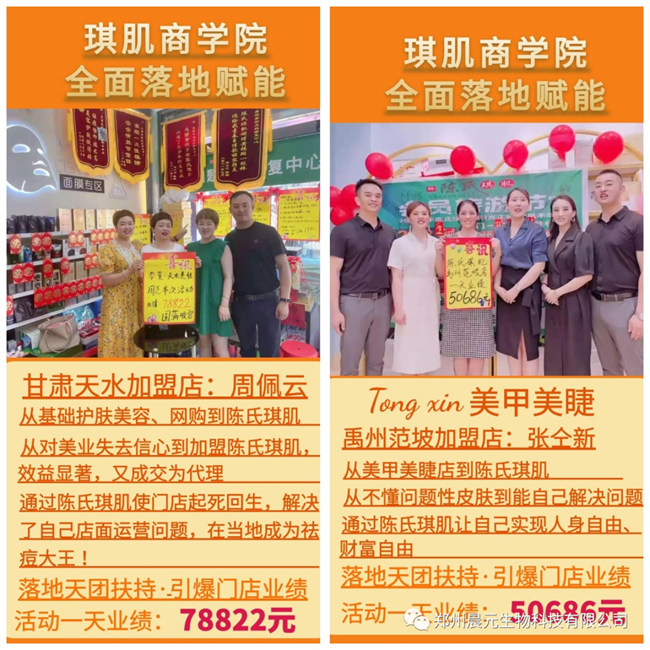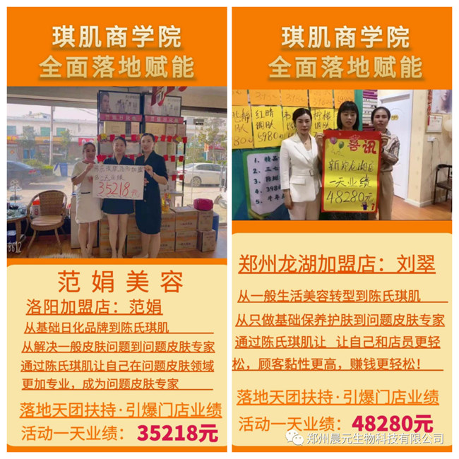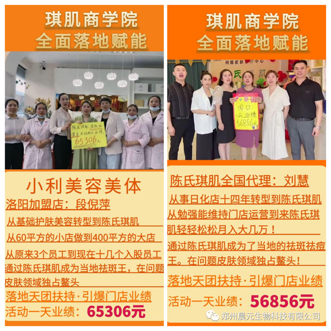 目前,陳氏琪肌服務(wù)過眾多美容院、小白店、嫁接店、形象店等多種類型的美容院,幫助美容院一天凈收入6-8萬元的變現(xiàn)成果,褒受美容院好評(píng)!